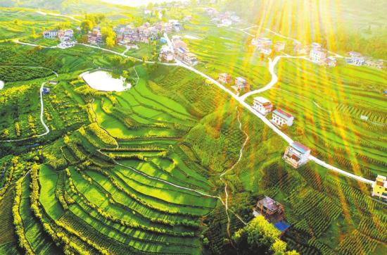 7月17日,在夕阳映射下,忠县涂井乡万顺村层层稻田五彩缤纷,宛若一幅彩色画卷。 万顺村位于忠县牛头脑山麓,平均海拔800米,常年种植水稻约1000亩,是忠县优质水稻生产基地之一,享有“高山粮仓”之美誉。7月份是水稻生长的关键时期,当地村民在农业部门技术指导下,加强田间管理,确保水稻丰收。 重庆日报通讯员余鸿摄