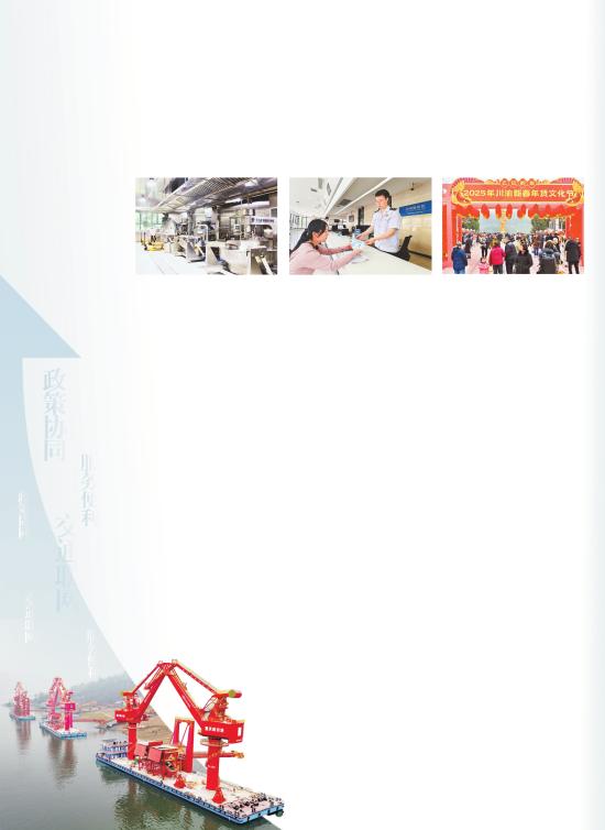 交通统筹方面,目前川渝省际通道已达到30个,成渝双核、毗邻城市之间实现1小时直达;会同四川、贵州实施嘉陵江、乌江船舶过闸联合调度,推动船舶过闸“一次申报、全线通过”;大力推动铁水联运,周边省市的货物在我市港口货运量的比重达50%。