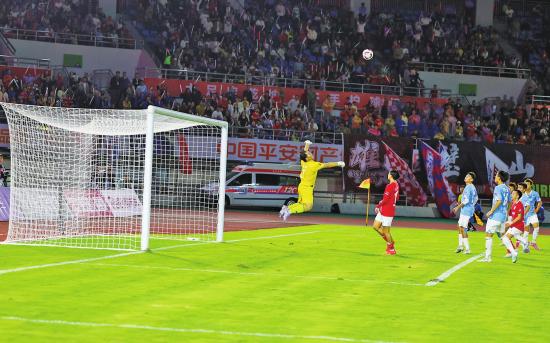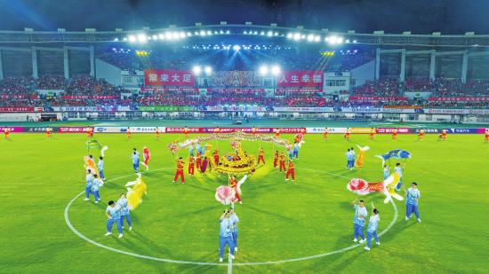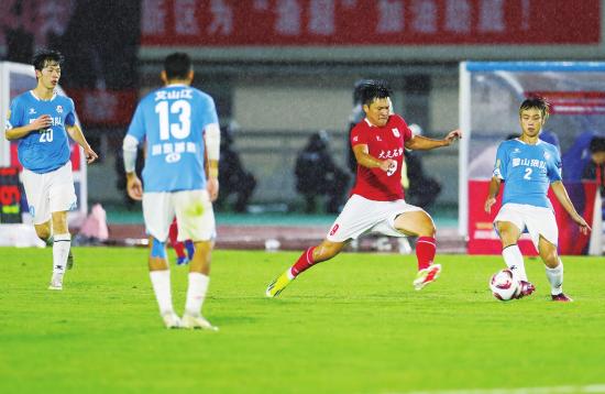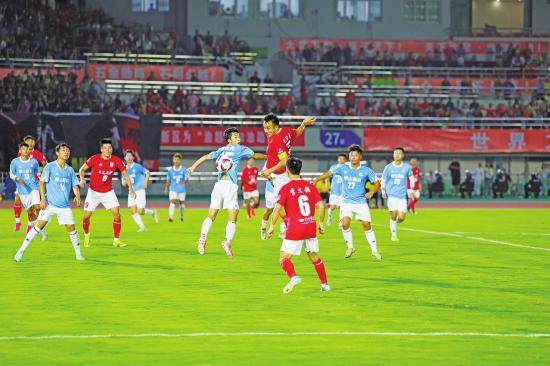 10月12日晚,2025重庆城市足球超级联赛大足主场赛在大足区体育中心开赛。当晚,东道主“大足石刻队”与“璧山狼队”展开激烈角逐,最终,“大足石刻队”凭借一记关键进球,以1:0的比分力克璧山狼队,赢得比赛。 新渝报记者瞿波欧柚希蒋世勇摄