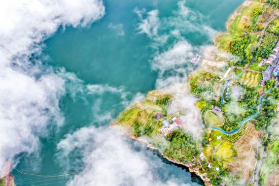 这是10月15日拍摄的石柱县桥头镇景色(无人机照片)。 重庆市石柱县桥头镇位于武陵山腹地,当地背靠大风堡原始森林,坐拥藤子沟国家湿地公园,山水秀丽、风景宜人。近年来桥头镇依托山水生态与田园风光资源,以“农业+文化+旅游”为发展路径,构建起特色风情民宿、休闲旅游观光等业态,有效盘活农村闲置资产,激活乡村振兴新动能。