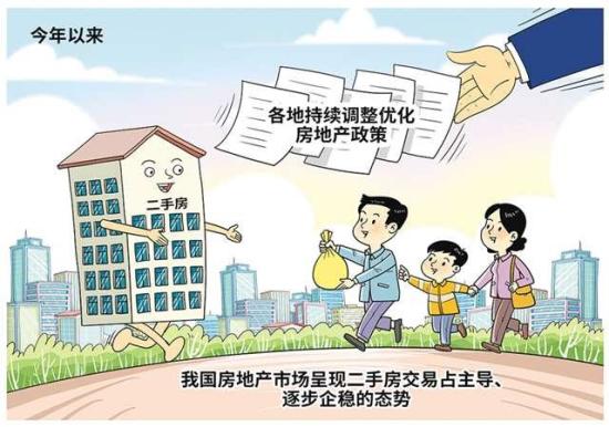 新华社北京11月17日电(记者王优玲张钟仁)取消或调减限制性措施,实施购房补贴、发放住房消费券,优化供给、精准供地……今年以来,各地持续调整优化房地产政策,我国房地产市场呈现二手房交易占主导、逐步企稳的态势。