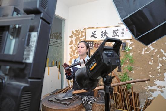 10月24日,大足电商产业园里,五金企业“足铁匠”正在直播带货。 新渝报记者谢凤摄