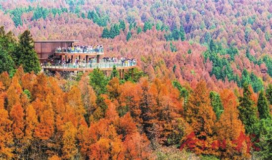 初冬的暖阳越过山脊,将南川山王坪国家森林公园的森林染上红黄交织的斑斓色彩。景观道上游客不断,这涌动的客流顺着仅4公里外的“大金佛山178环山趣驾”环线,如同溪流汇入山王坪村,让村里的石黄墙院也跟着热闹起来。厨房飘出腊肉香,村民正为中午要留饭的几桌自驾游客忙活着。