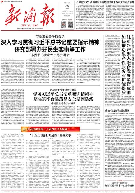 新渝报讯(记者犹骥通讯员徐鹏)12月24日上午,区委常委会会议召开,学习贯彻习近平总书记对未...